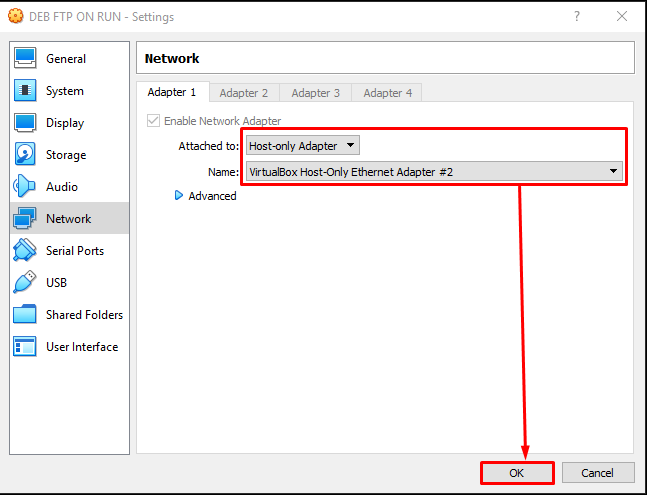 - Ganti menjadi Host-only Adapter dan pilih Adapter keberapa kita mau menyambunkannya.
